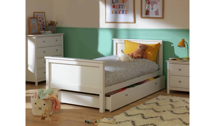 The donco kids' sleigh bed has two extra large drawers built into its frame that can act as a wardrobe, freeing up space in small rooms.